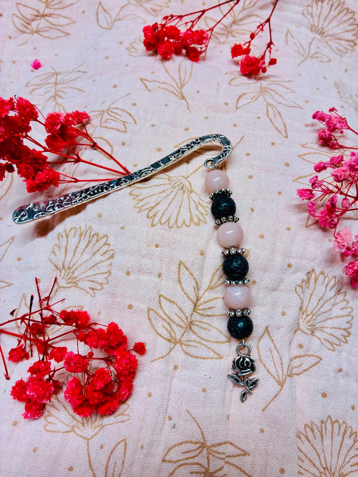 Ce marque-page en Pierre de Lave et Opale Rose est un talisman de lecture puissant et doux à la fois.